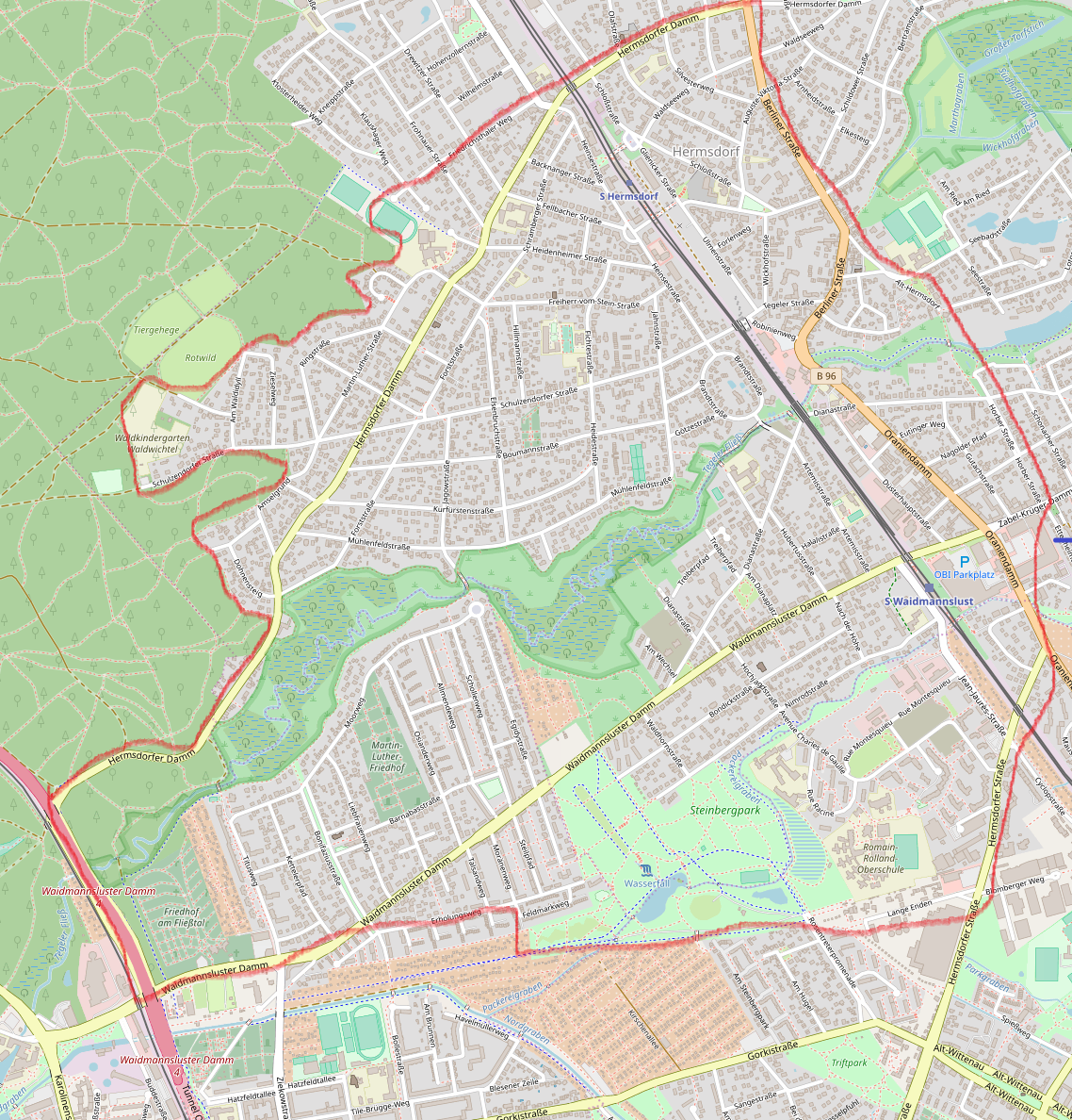 Osten: Berliner Str., Alt-Hermsdorf, Horber Str., Oraniendamm, Hermsdorfer Str.
