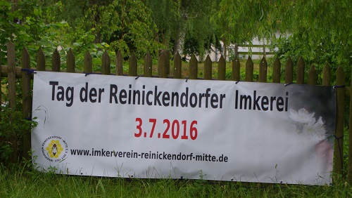 Der Tag der Reinickendorfer Imkerei wirft seine Schatten voraus - heute haben wir das Banner am Zaun zur Familienfarm Lübars angebracht. Leider ist es durch einen Fehler beim Druck nicht ganz wie bestellt doch bis das neue kommt, wird es schon für unsere Veranstaltung Werbung machen.